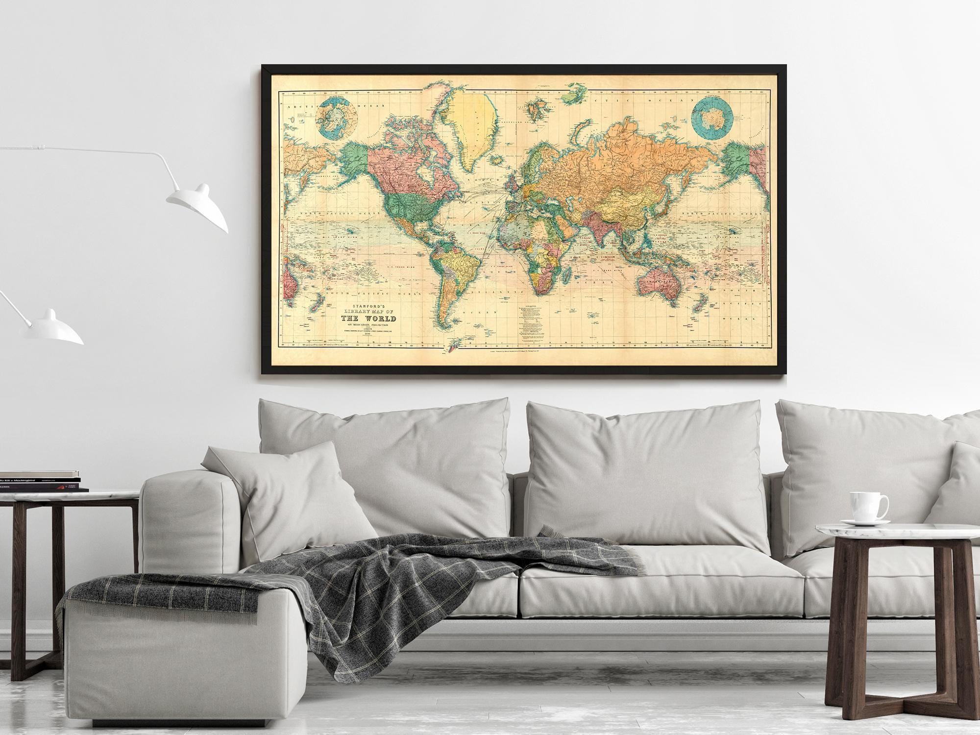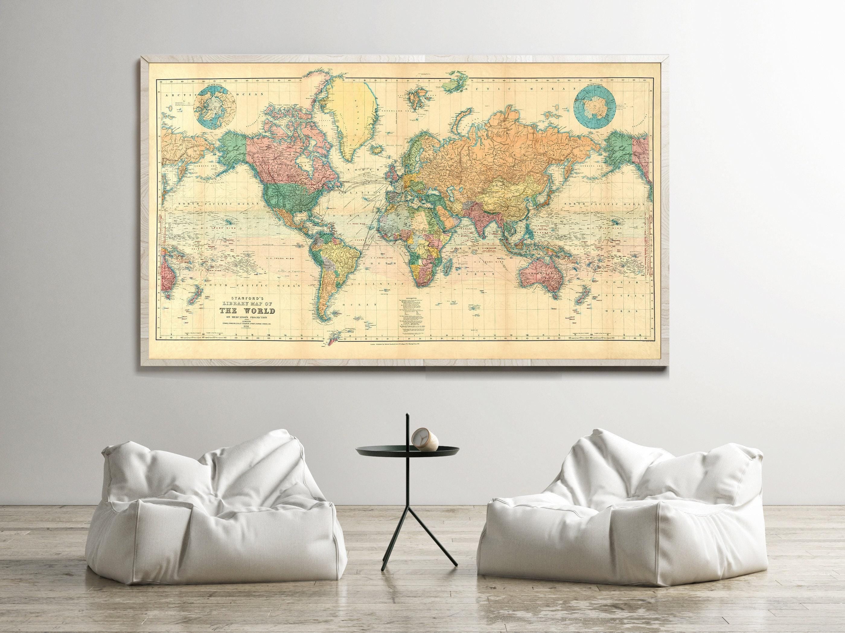 Beautiful World Map Vintage Atlas 1898 Mercator projection | World Map Gift World Map Print | Vintage World Map | World Map Wall Art