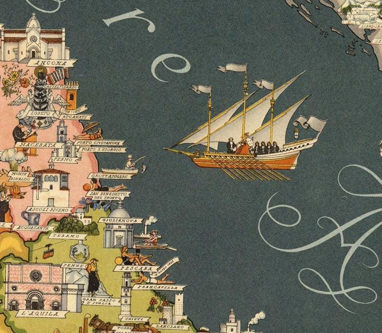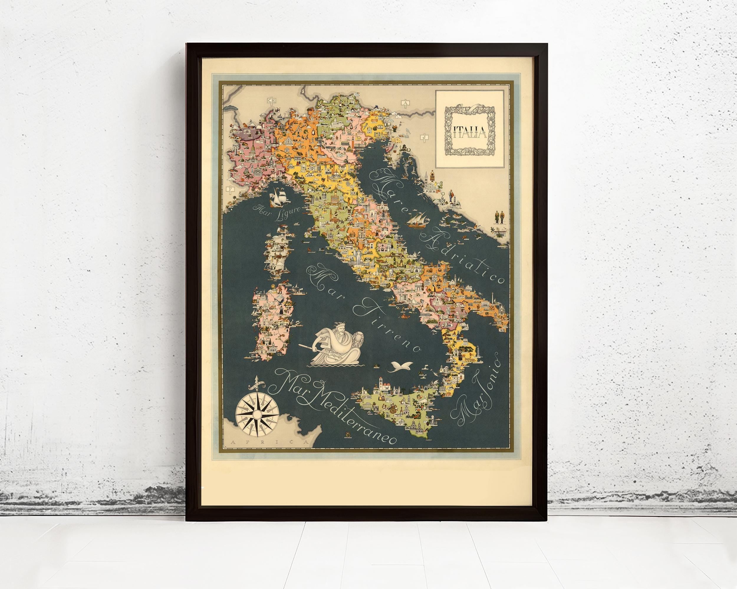 Old Map of Italy 1938 Pictorial Map Italy Vintage Decor | Vintage Map Wall Art Print