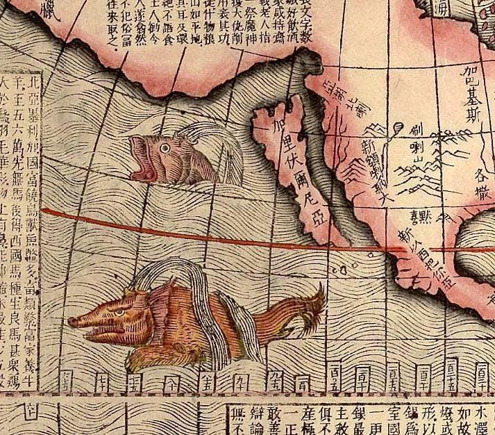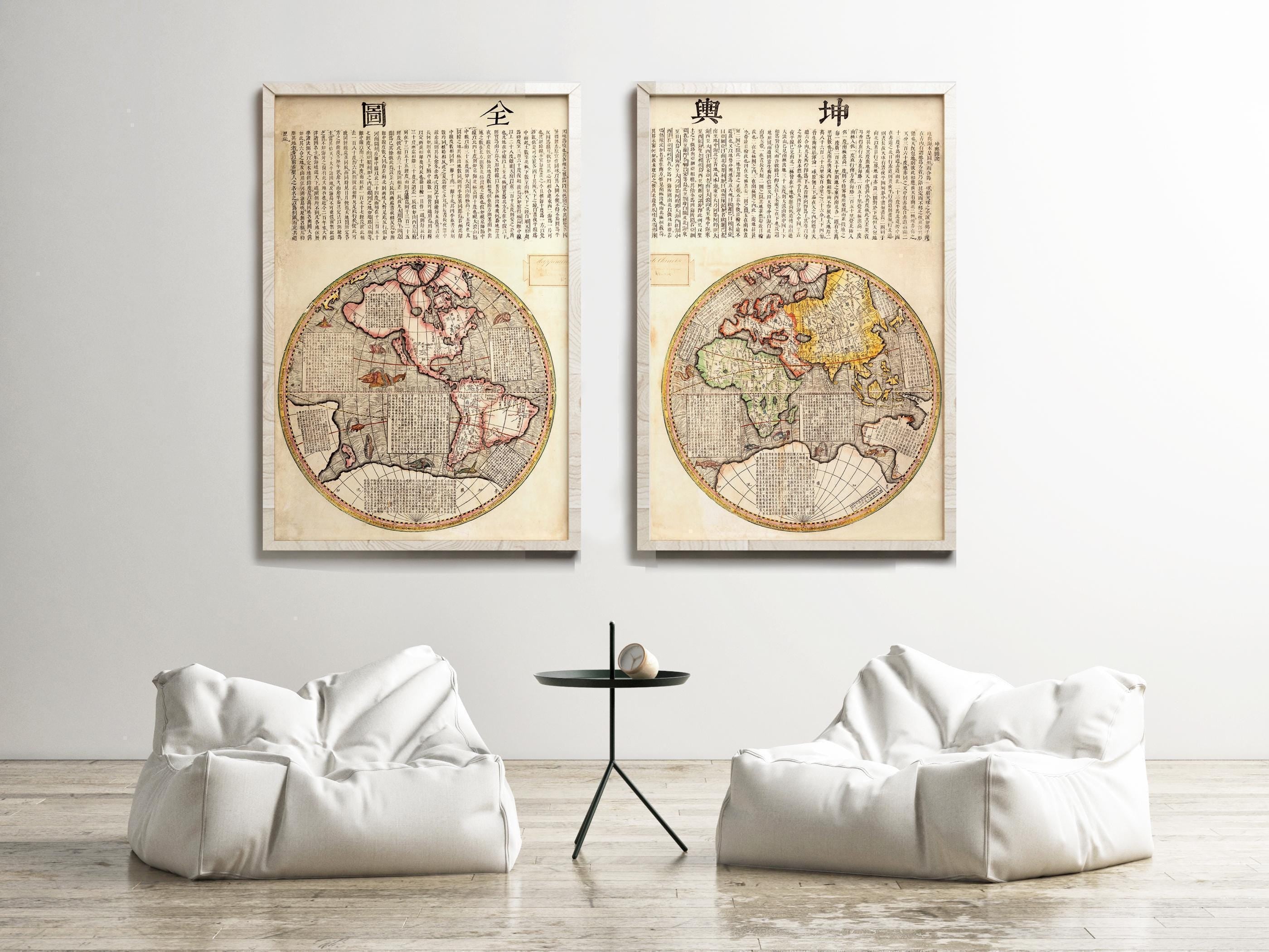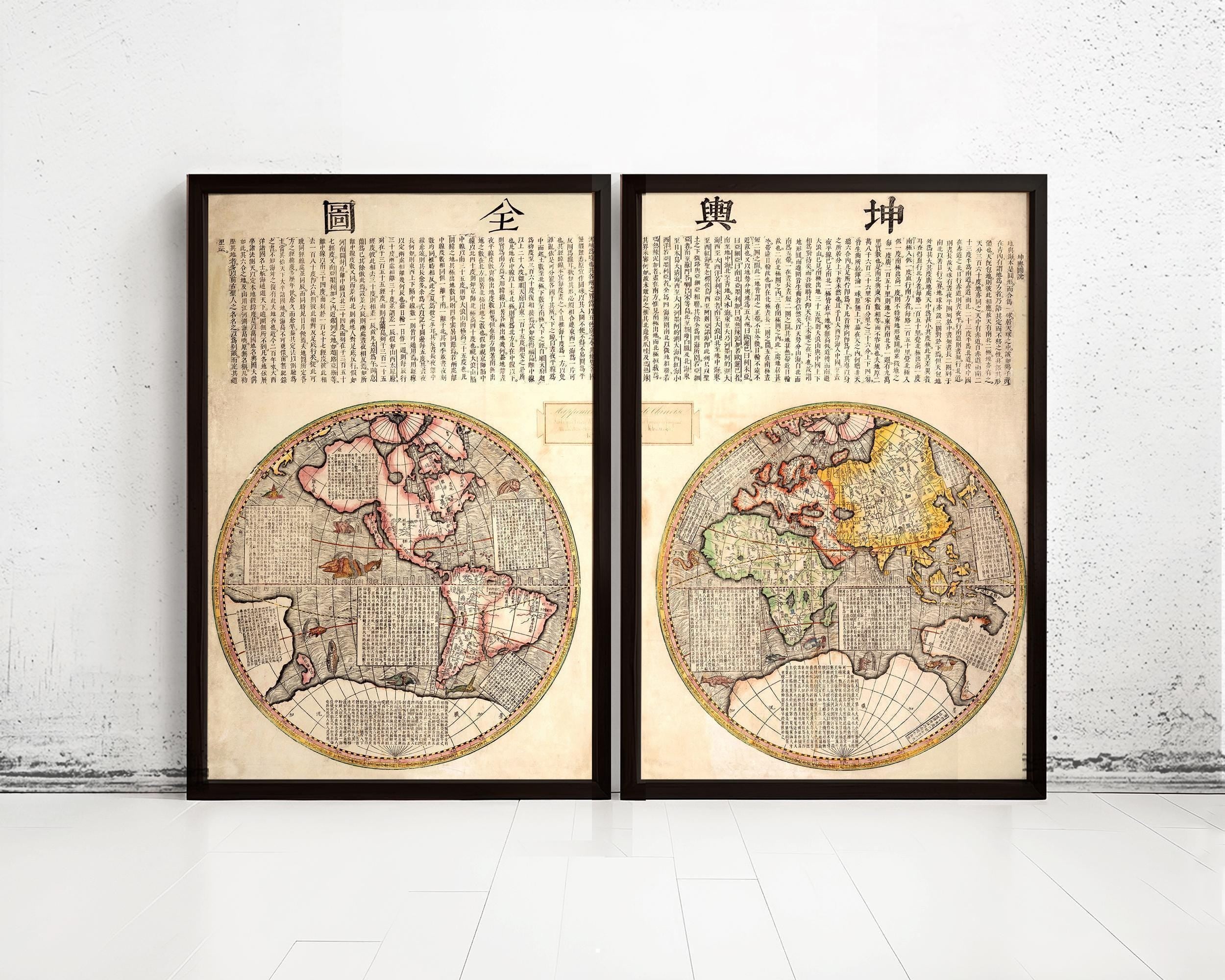 Old Chinese World Map 1674 (2 pieces) Vintage Map | Vintage World Map