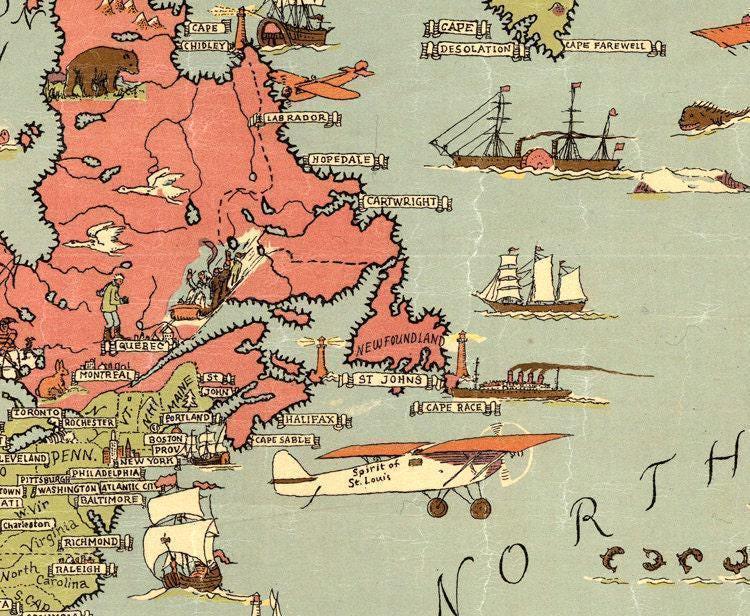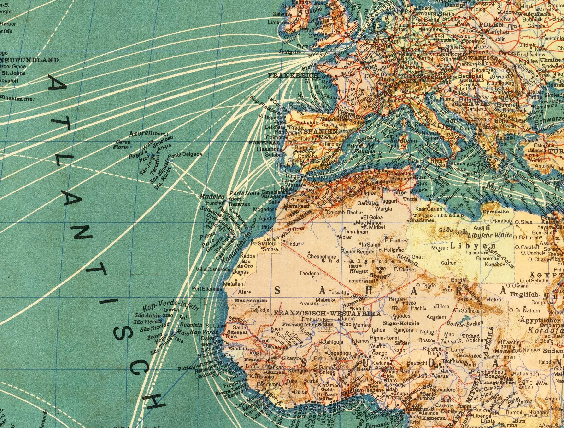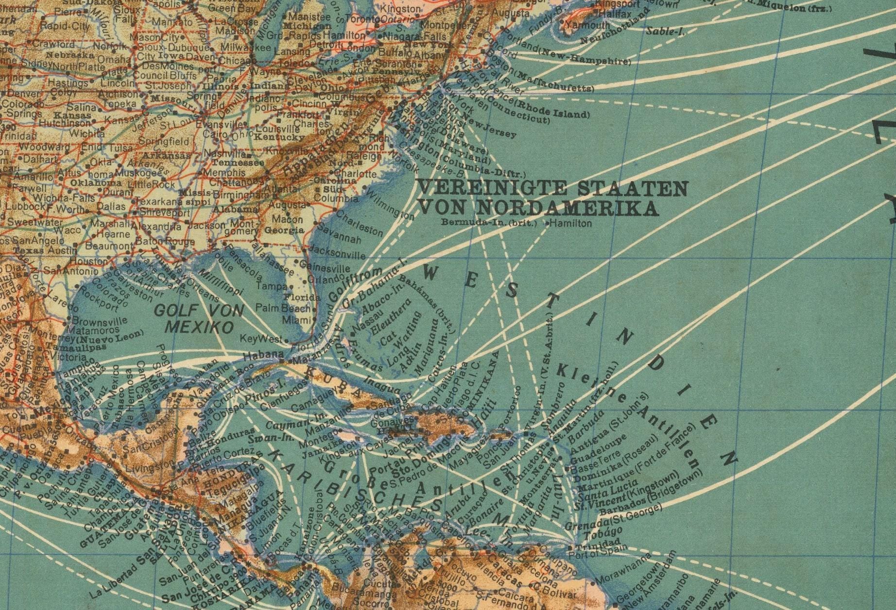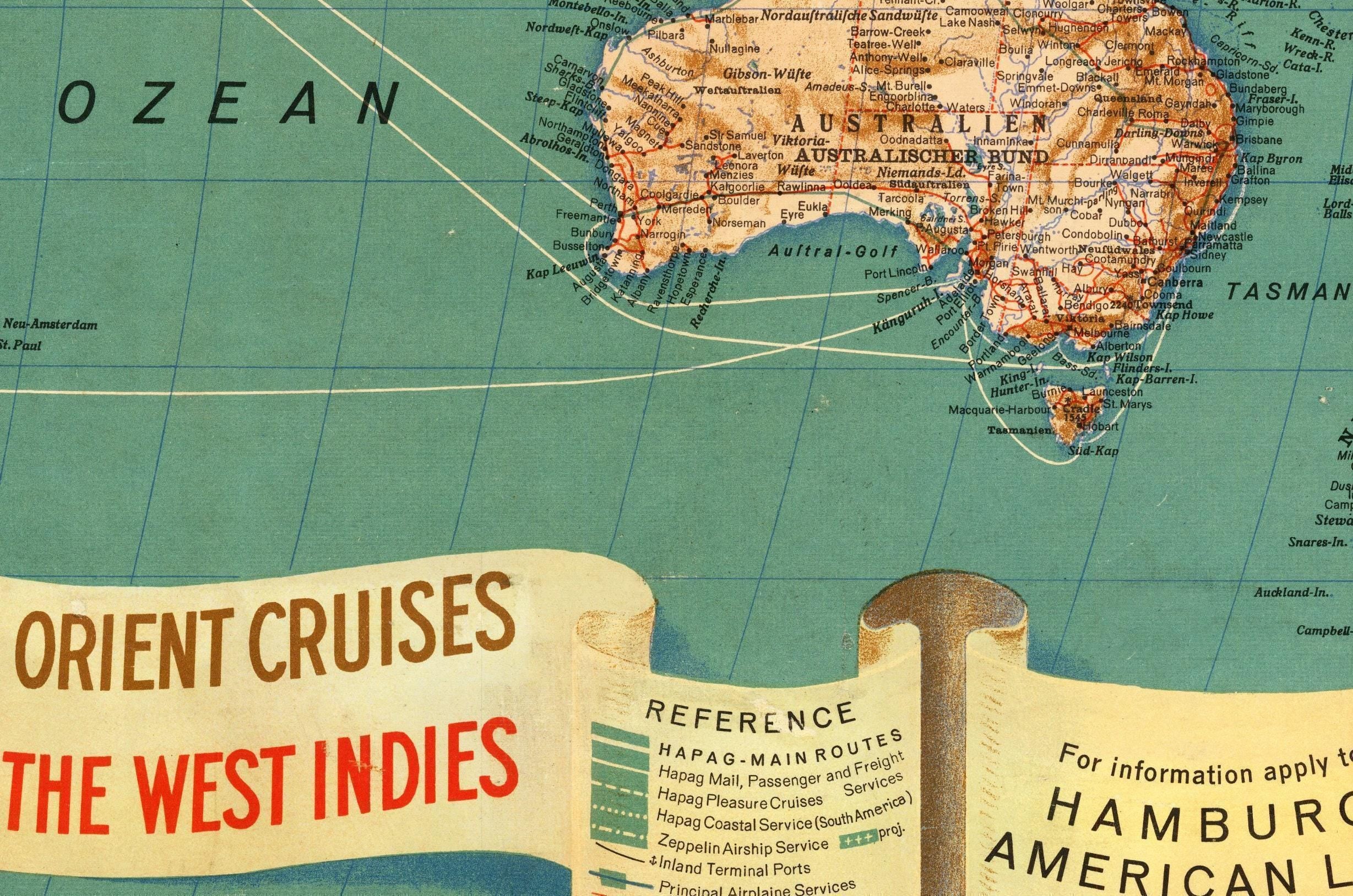 Old World Map 1931 Cruises Health Pleasure Hamburg Lines German Airlines | Vintage World Map