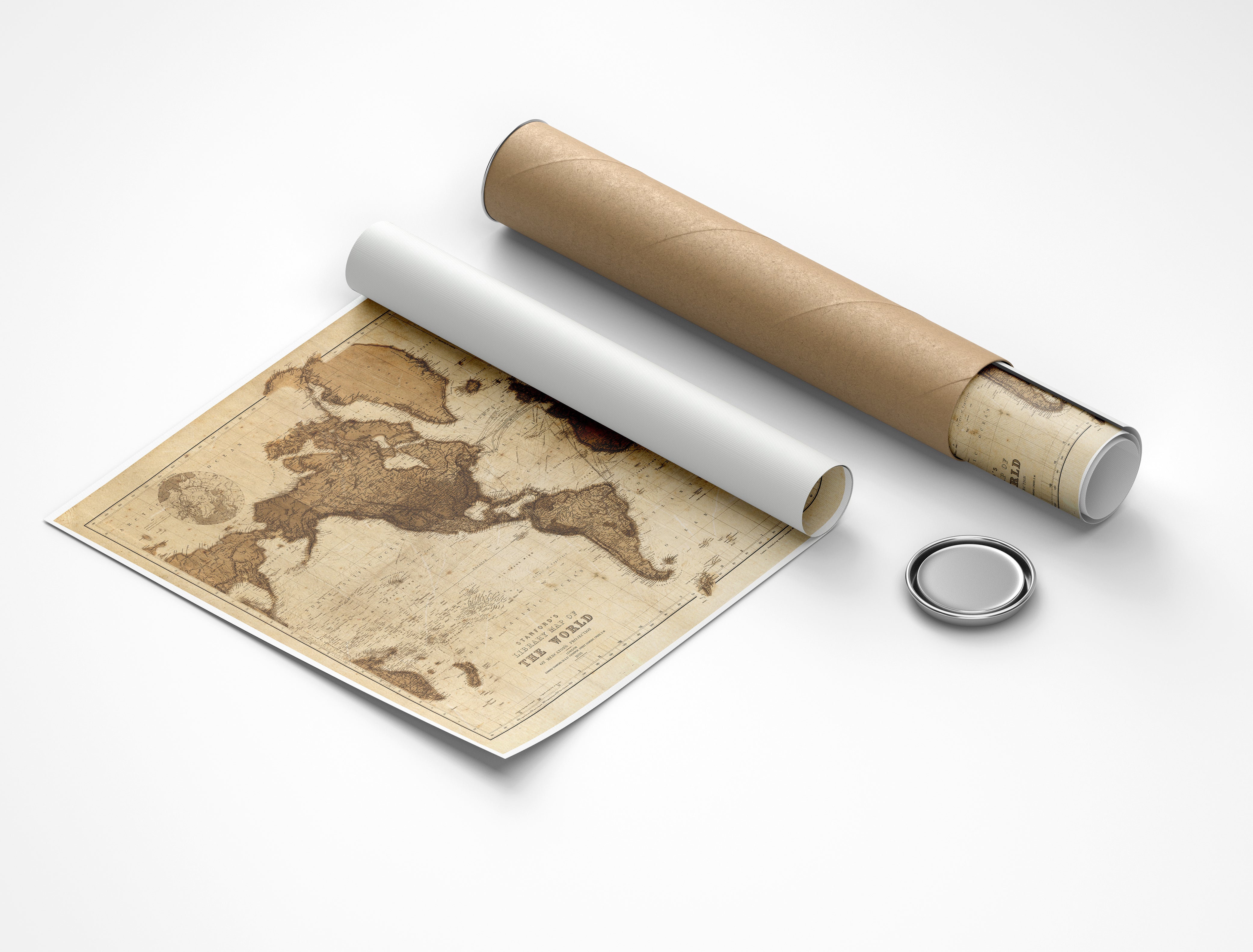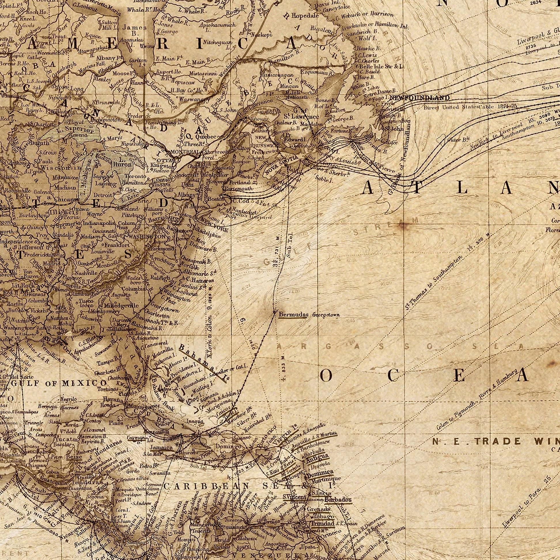 Vintage World Map 1898 – Mercator Projection Atlas Map, Sepia Antique World Map Wall Art