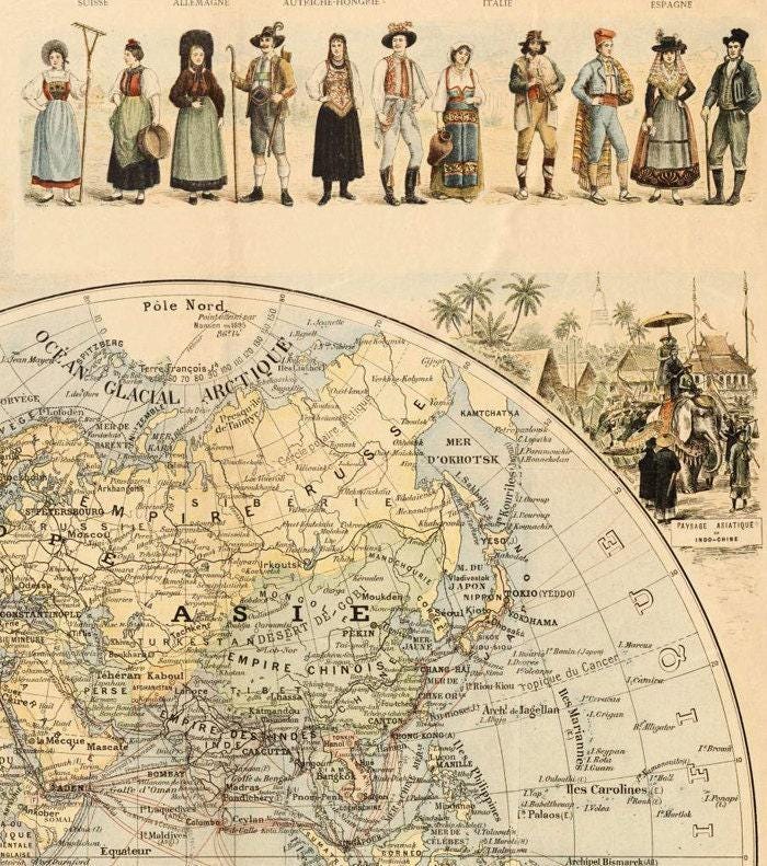 Vintage World Map Antique Atlas 1900 folklore map of the world | World Map Gift World Map Print | Vintage World Map | World Map Wall Art