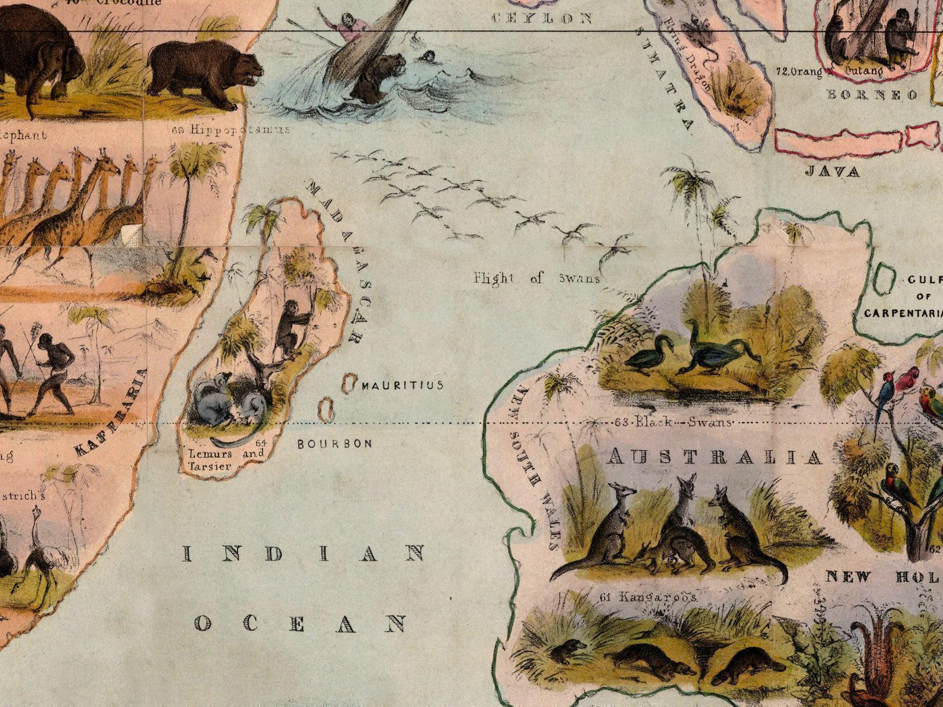 Old Zoological Map of The World 1844 Vintage Poster Animals of the World zoology map | Animal World Map Wall Map Print | Large Poster Print