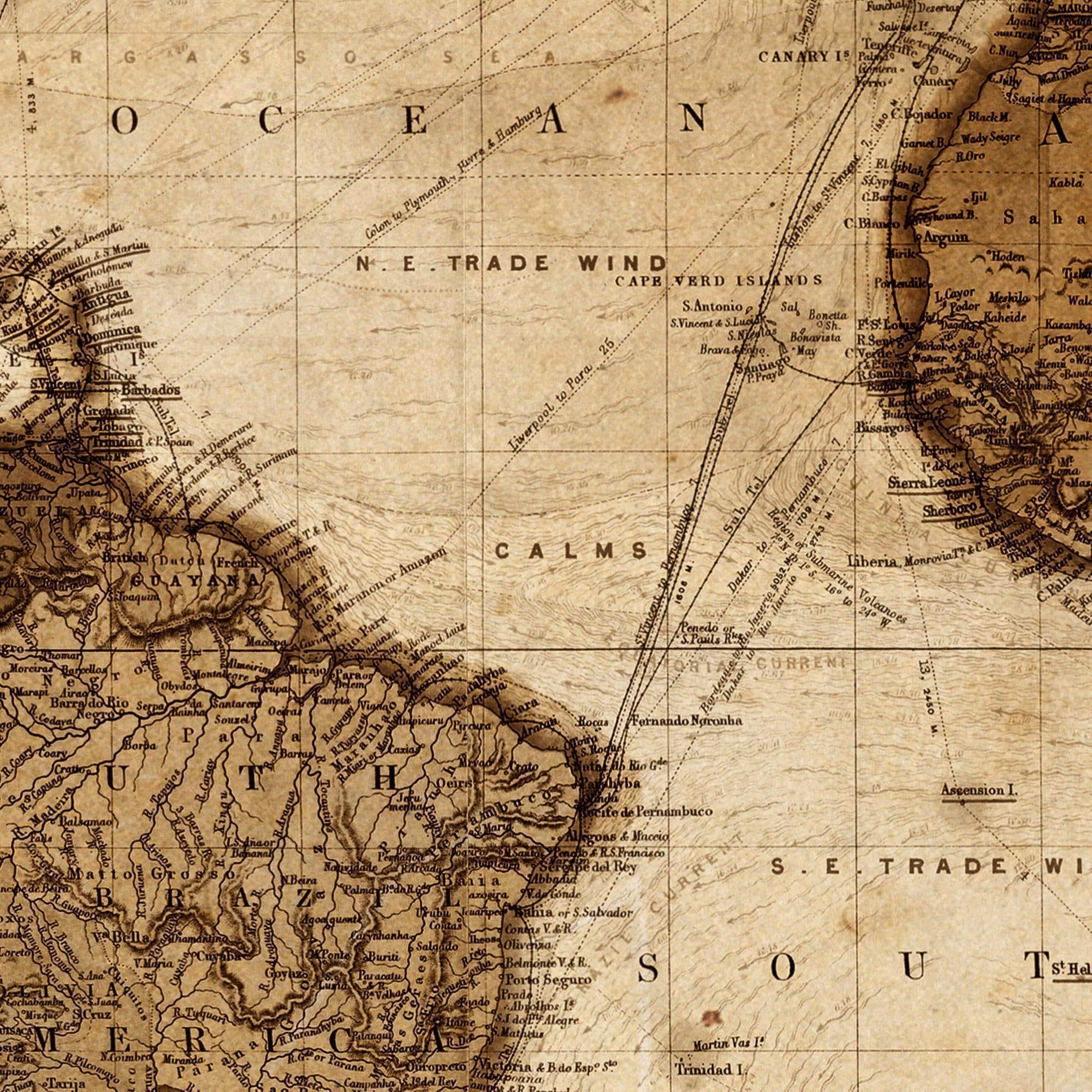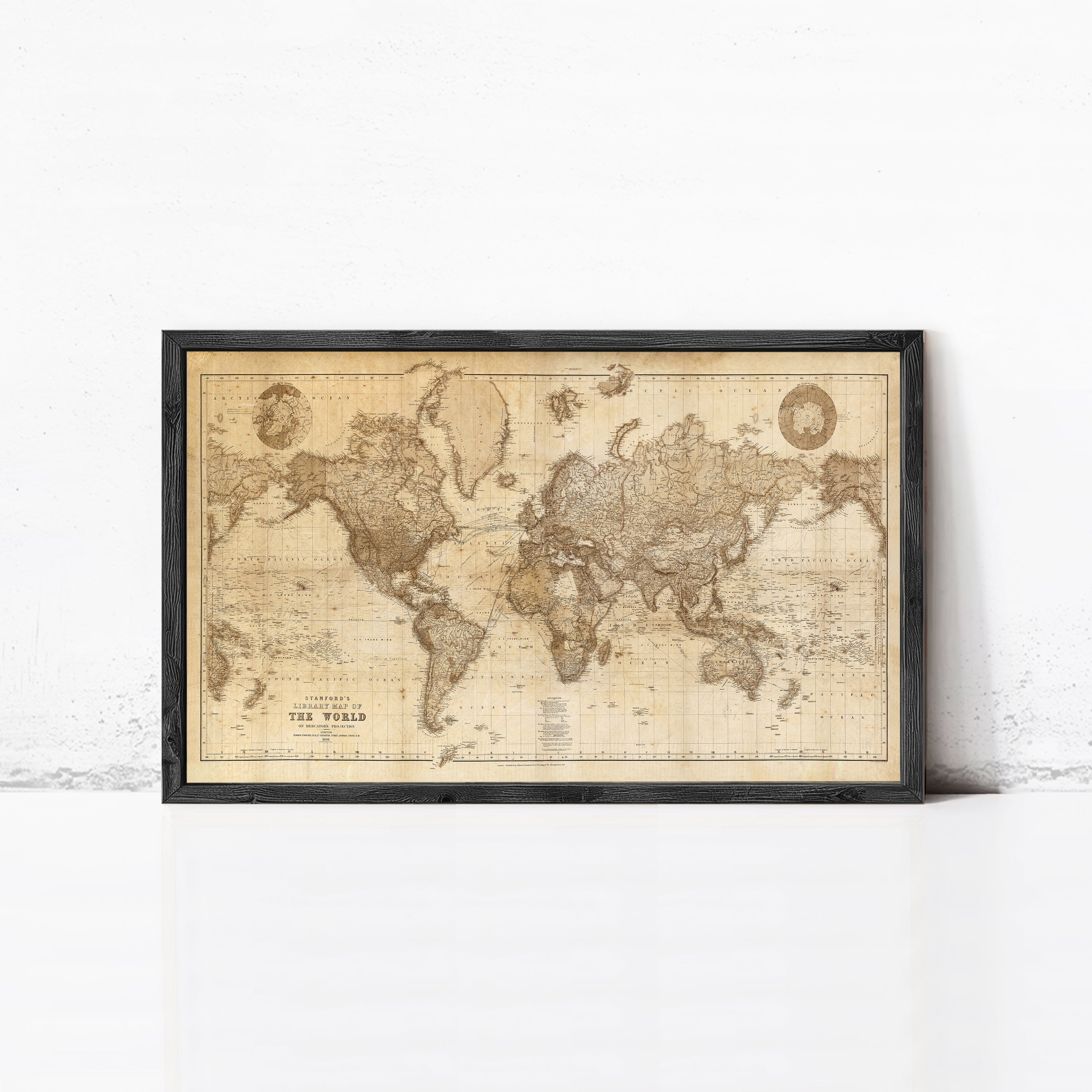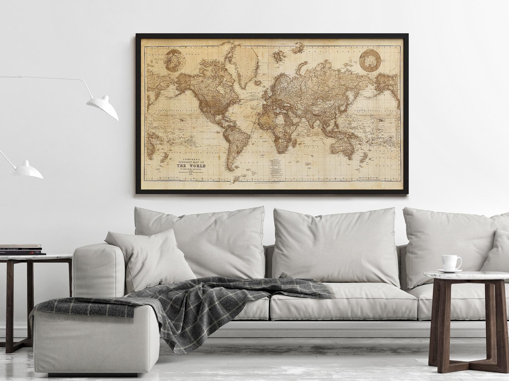 Big Old World Map 1849 Vintage Atlas Mercator Projection Sepia | World Map Gift World Map Print | Vintage World Map | World Map Wall Art