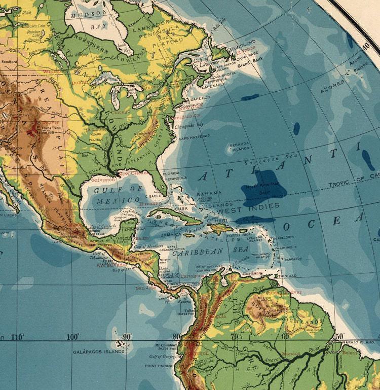World Map Vintage Atlas 1950 Mercator projection Vintage Map | Vintage World Map