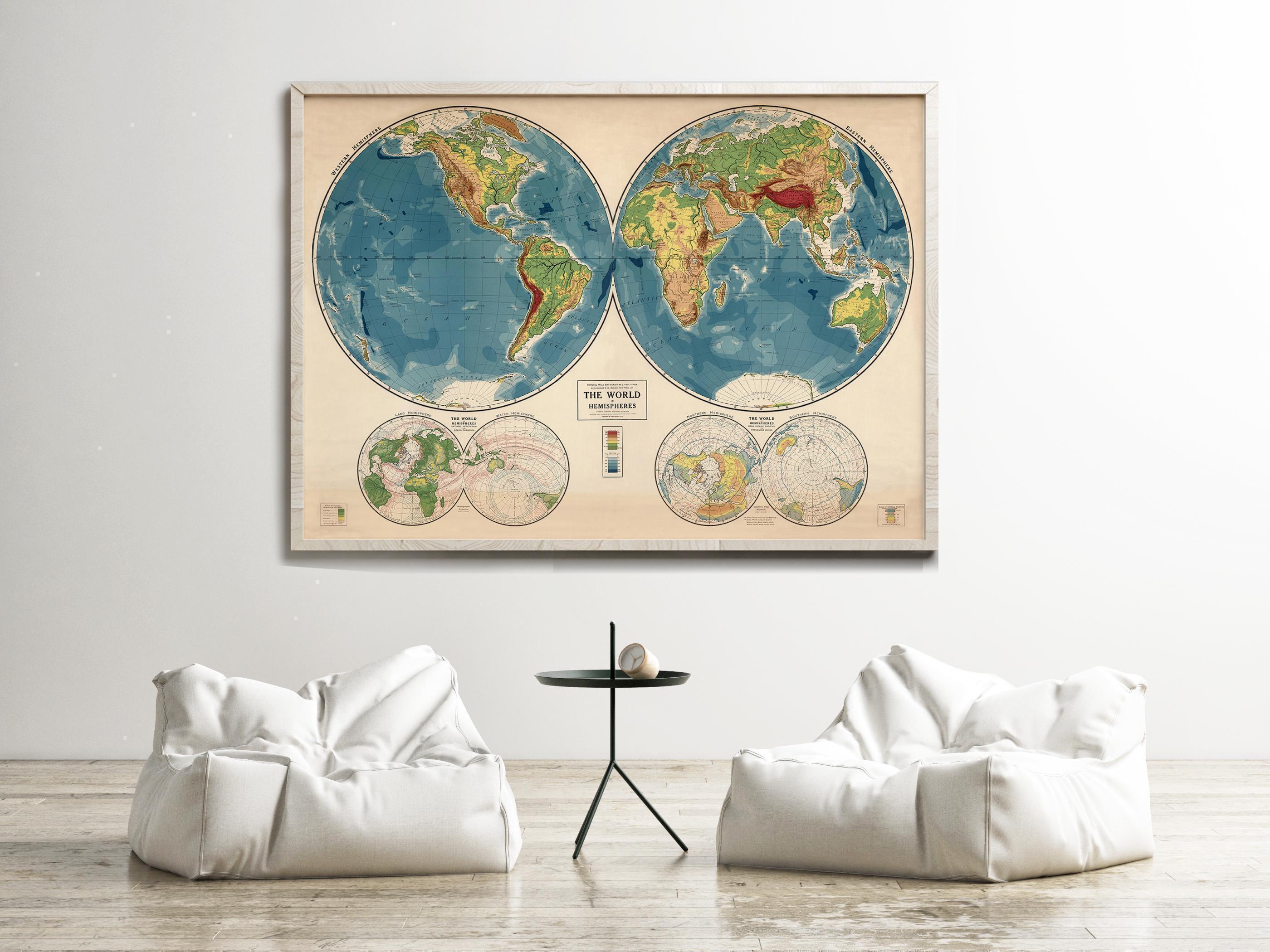 Old World Map Atlas Vintage World Map 1912 Two Hemispheres | Vintage World Map