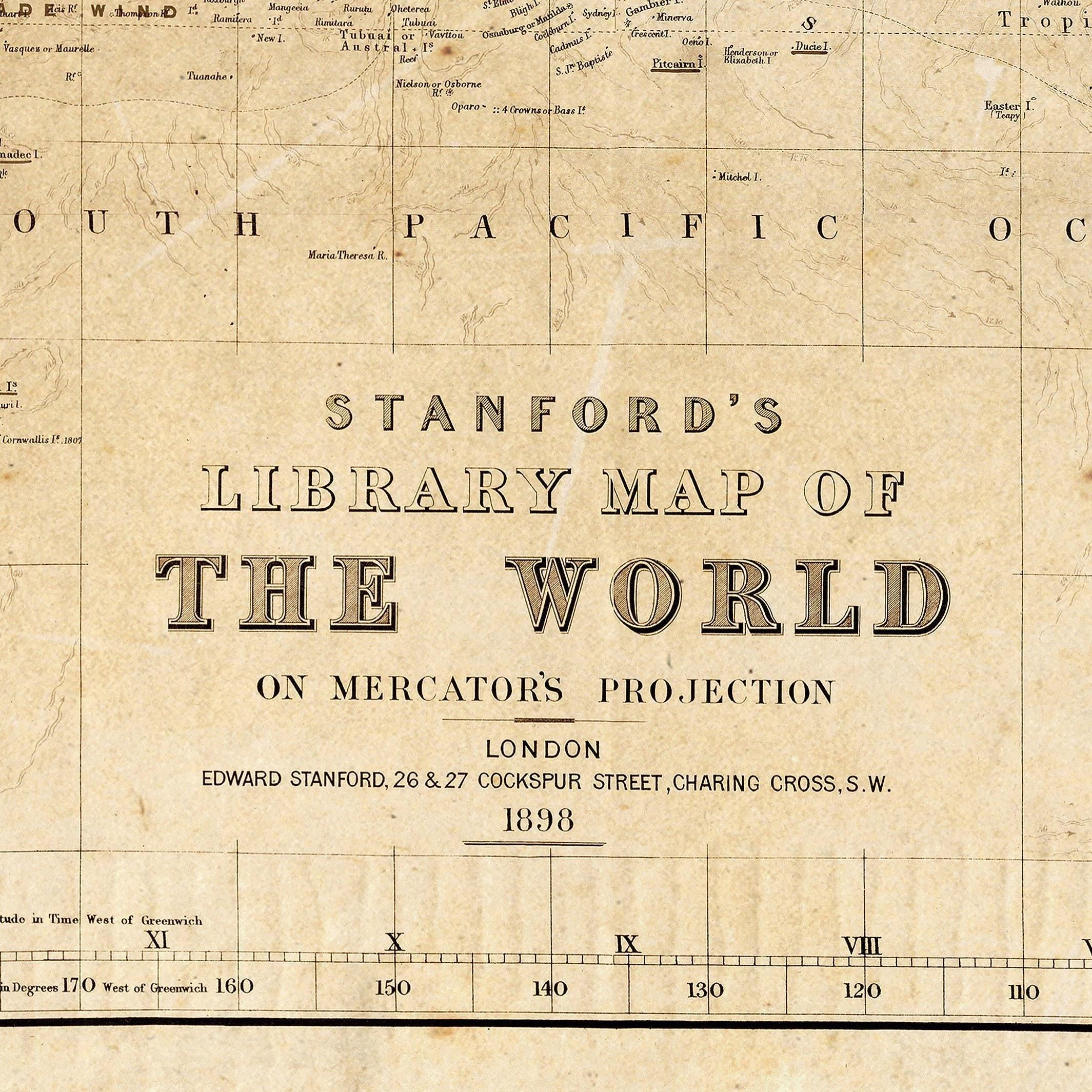 Magnificient World Map Vintage Atlas 1898 Mercator Projection | Vintage World Map