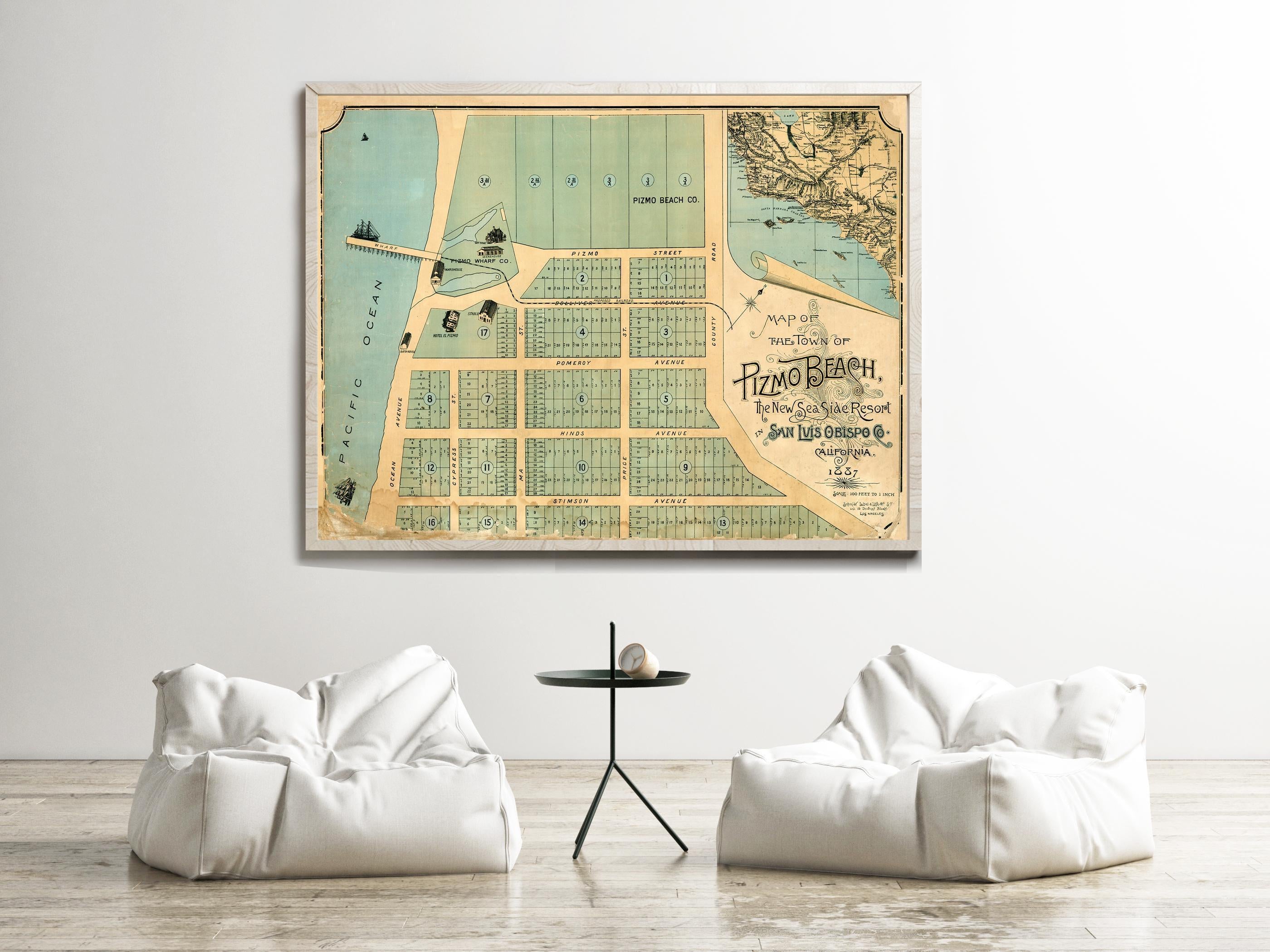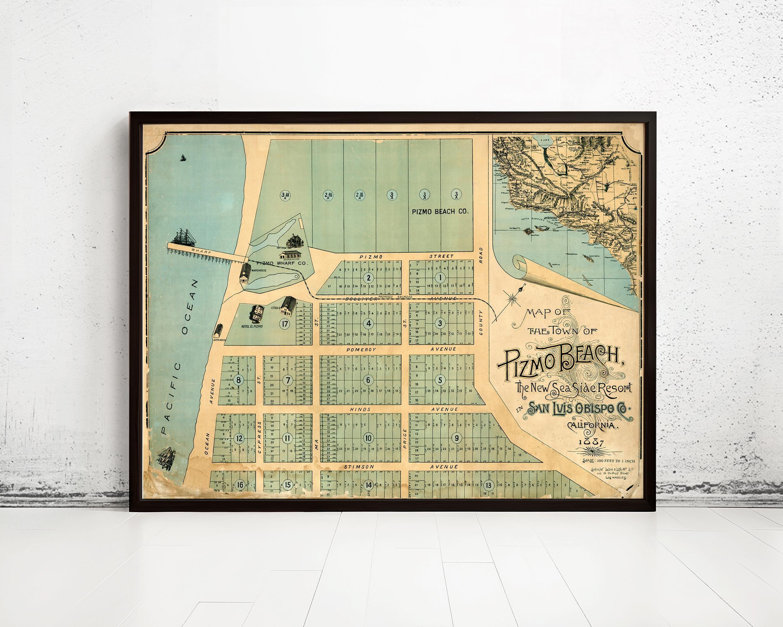 Old Map of Pismo Beach San Luis Obispo 1887 Vintage Map | Vintage Map Wall Art Print