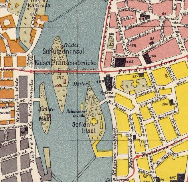 Old Map of Prague 1910 Czech Republic Vintage Map