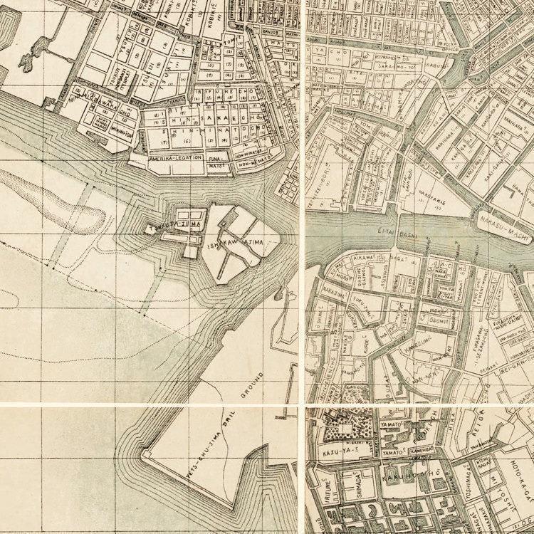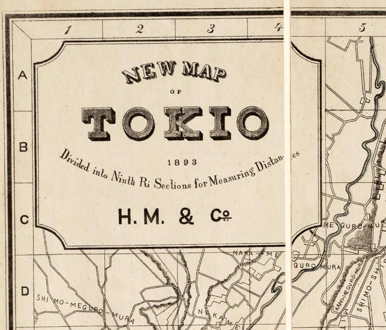 Old Map of Tokyo Japan 1893 Vintage Map Tokyo