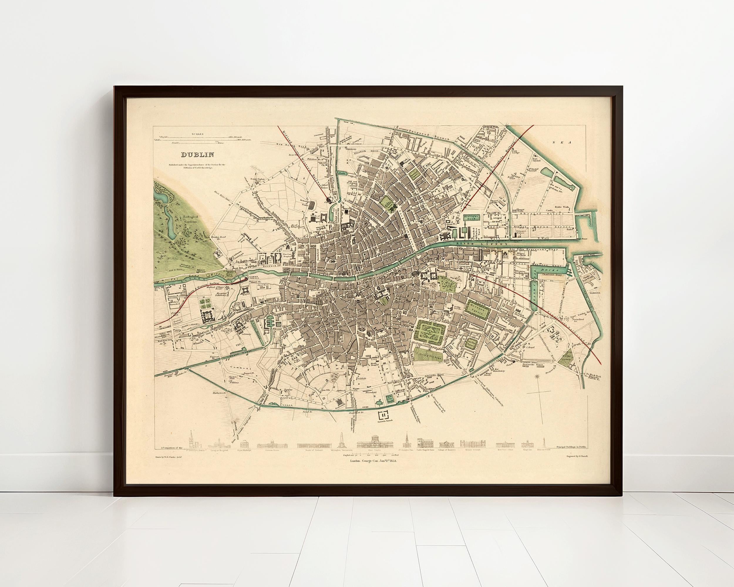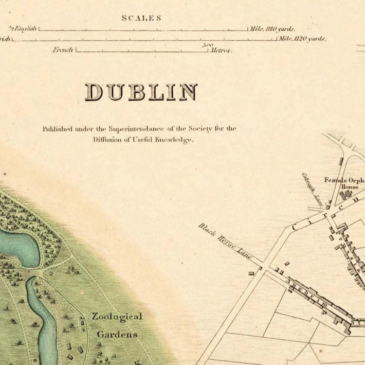 Vintage Map of Dublin, Ireland 1853 Antique Vintage | Vintage Map Wall Art Print